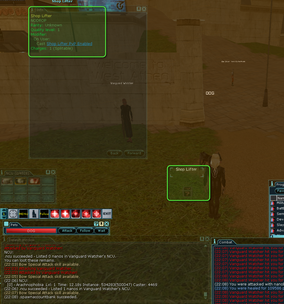 Attempted this. Added arrows in my inventory while attacking with Pew Pew! (.item 164515 164515 200) - noticed that the Vanguard Watcher I was attacking got hit with 50 damage x 5) with the…