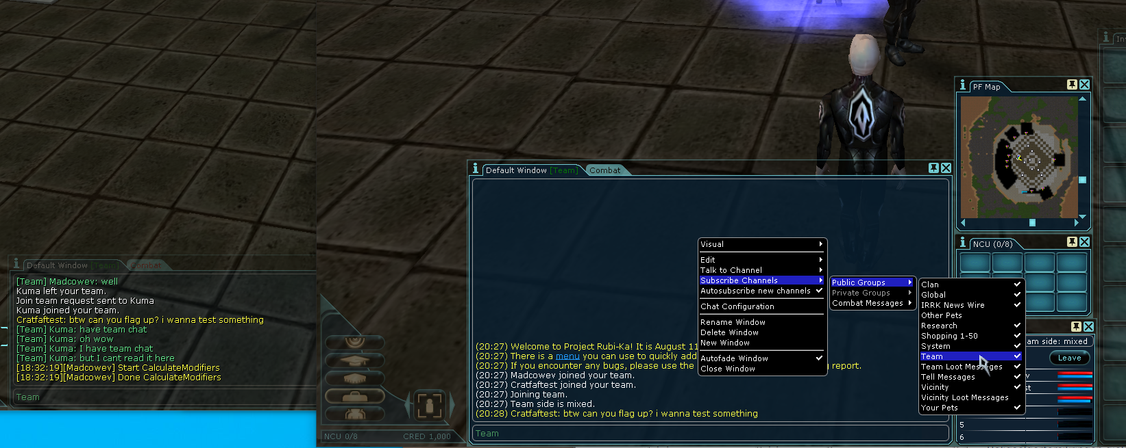 Problem 1 occasionally crops up, but can be fixed by reforming team. Problem 1 only occurs when first forming a team: only the leader and invitee will have their team channels broken. Any subsequent team members (member #3, #4, etc) are not affected