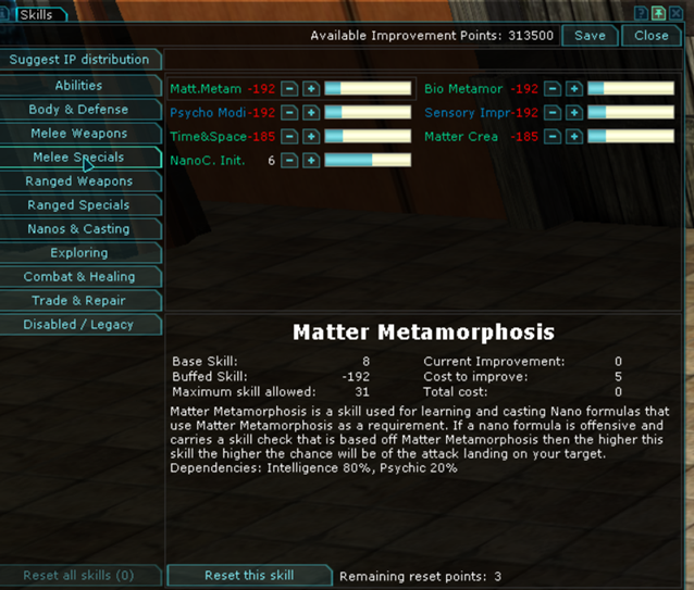 I did an IP reset and it reset all my skills but the nano skills are still bugged out