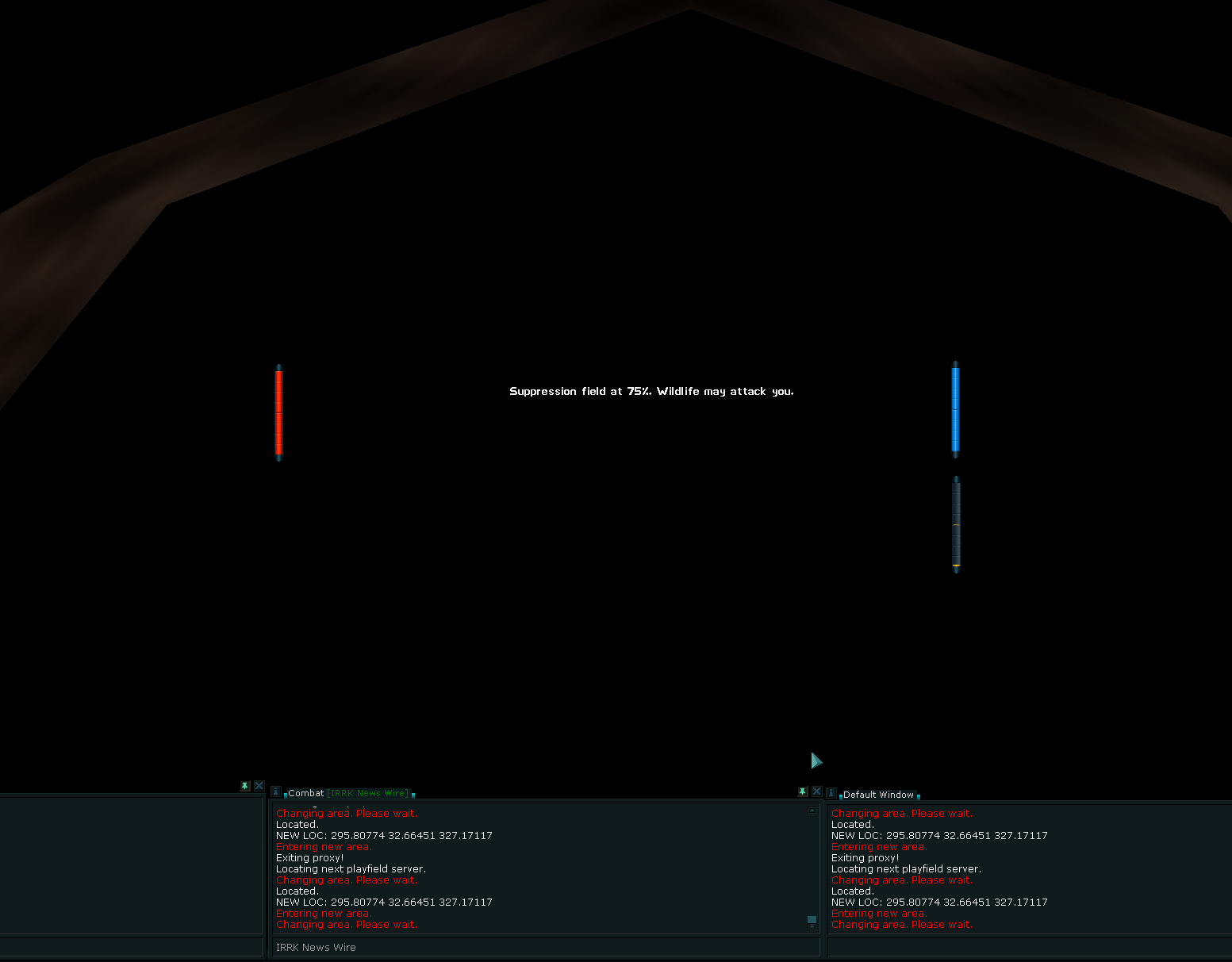 This seems to happen frequently since a couple of days ago ago; Ran into this issue three times, once inside Ely red temple at one of the door between rooms, once at a portal in IS and now in the NLC adv shop.
